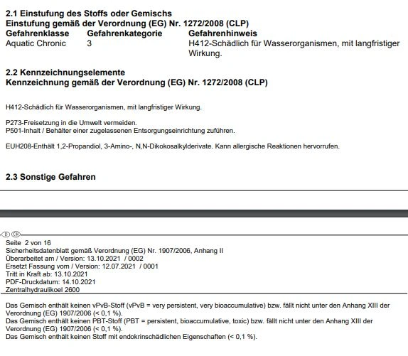 - Zentralhydrauliköl 2600