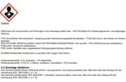 EUH066 Wiederholter Kontakt kann zu spröder oder rissiger Haut führen.