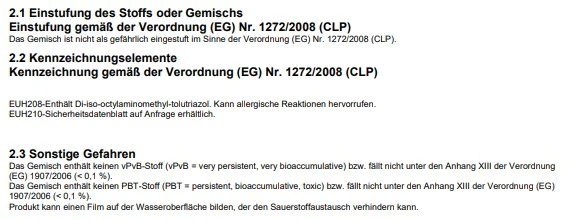 • Verhindert Schaumbildung und das Aushärten von Dichtungen.
