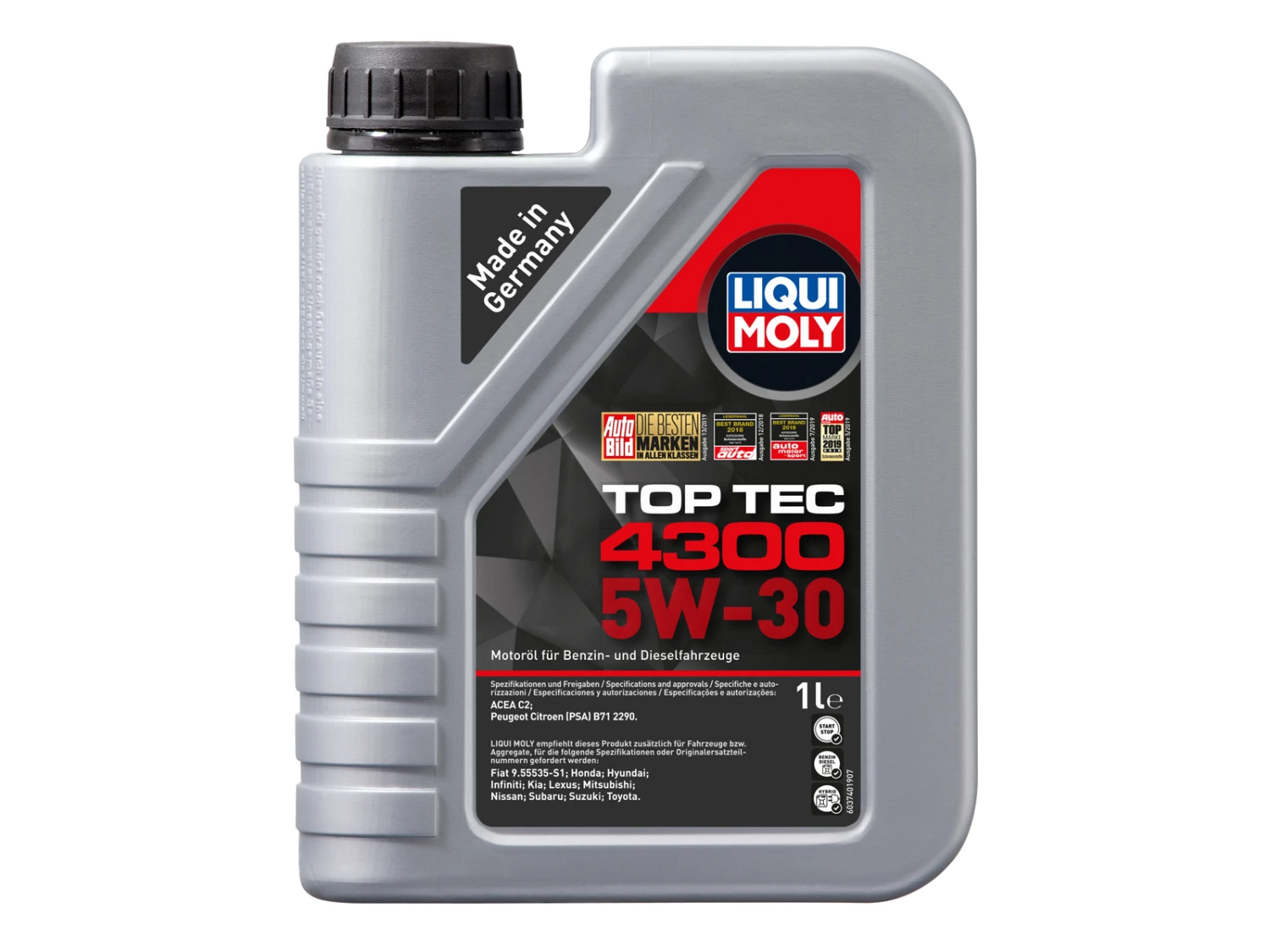 - 3740, 5W-30, C2, Fiat 9.55535-S1, Fiat9.55535-S1, Honda, Hyundai, Infiniti, Kia, Lexus, Mitsubishi, Nissan, P000325, PSA B71 2290, PSAB712290, Subaru, Suzuki, Top Tec 4300 5W-30, TopTec43005W-30, Toyota