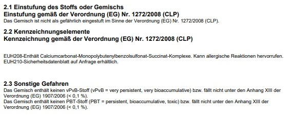 EUH208 Kann allergische Reaktionen hervorrufen.